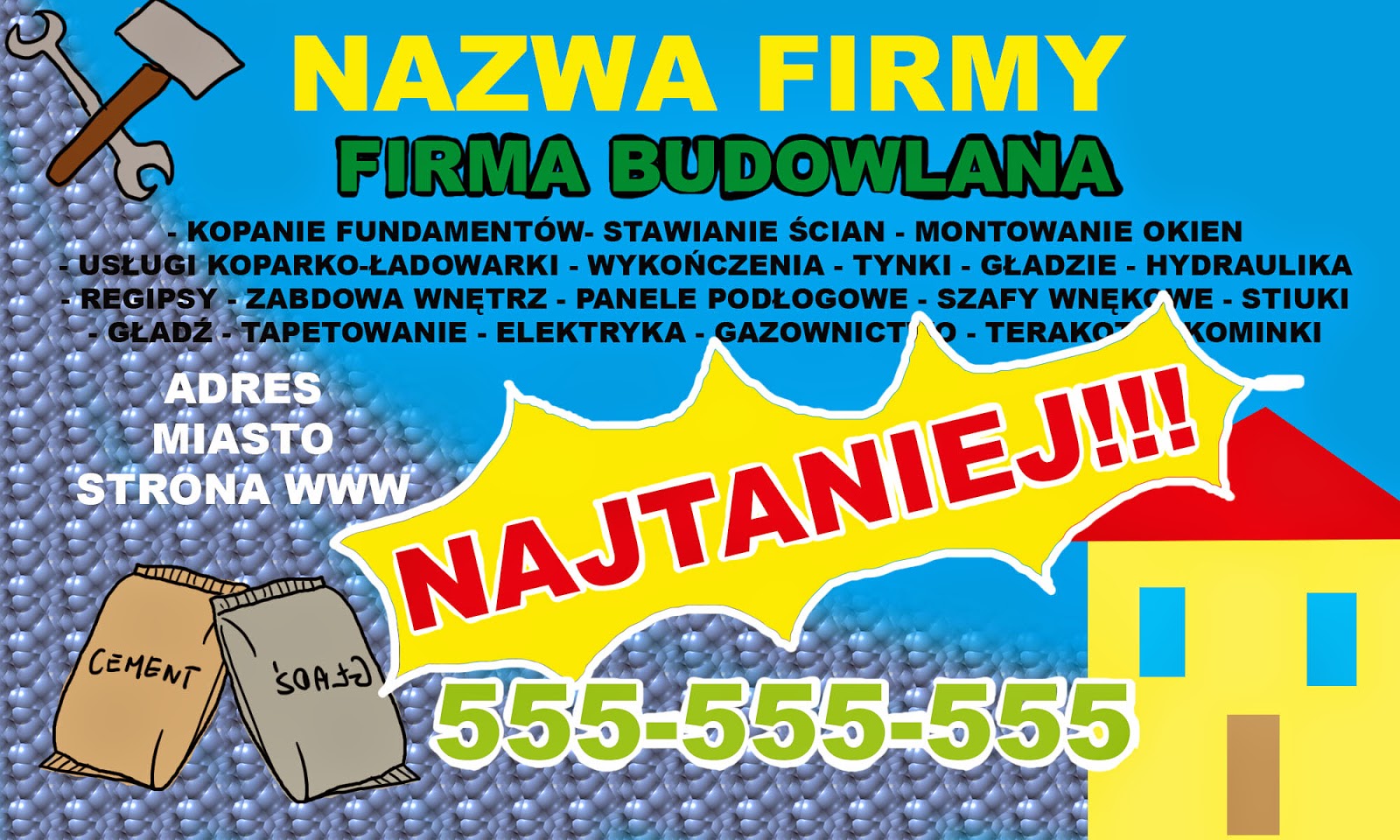 Piękne widoki dalekich krajów na billboardzie biura turystycznego, czy zdjęcie zadbanych dłoni na ulotce salonu manicure to jedno, jednak skumulowane obrazki gładzi szpachlowej, gipsu i farb na plakacie firmy remontowej to drugie. Nigdy nie rozumiałam dlaczego niektórzy tak bardzo zabiegają o to, aby na ich reklamach pojawił się cały wykorzystywany inwentarz.