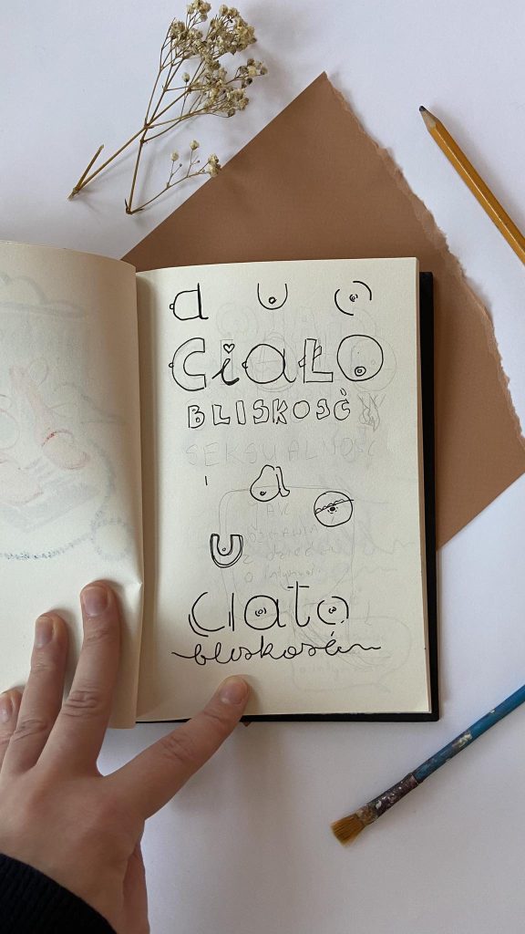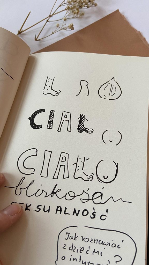 Musiałam uważać, by nie popaść ani w wulgarność, która mogła zrażać, ani w przesłodzony styl sugerujący małą powagę tematu. Zależało mi też na tym, aby okładka nie miała nudnej, szkolno-edukacyjnej maniery estetycznej.